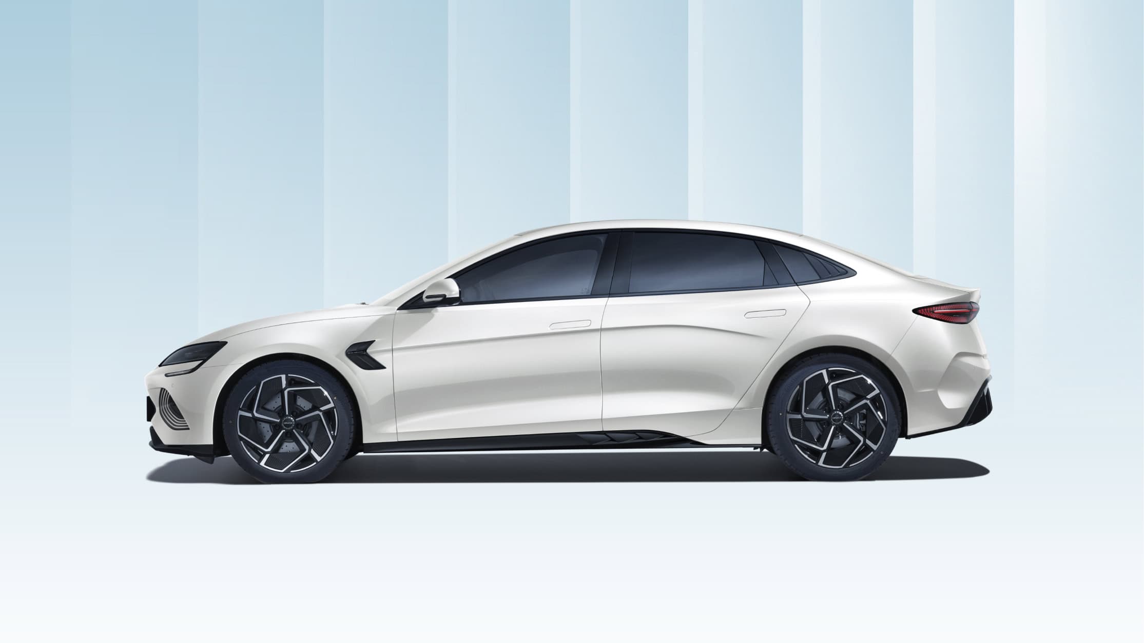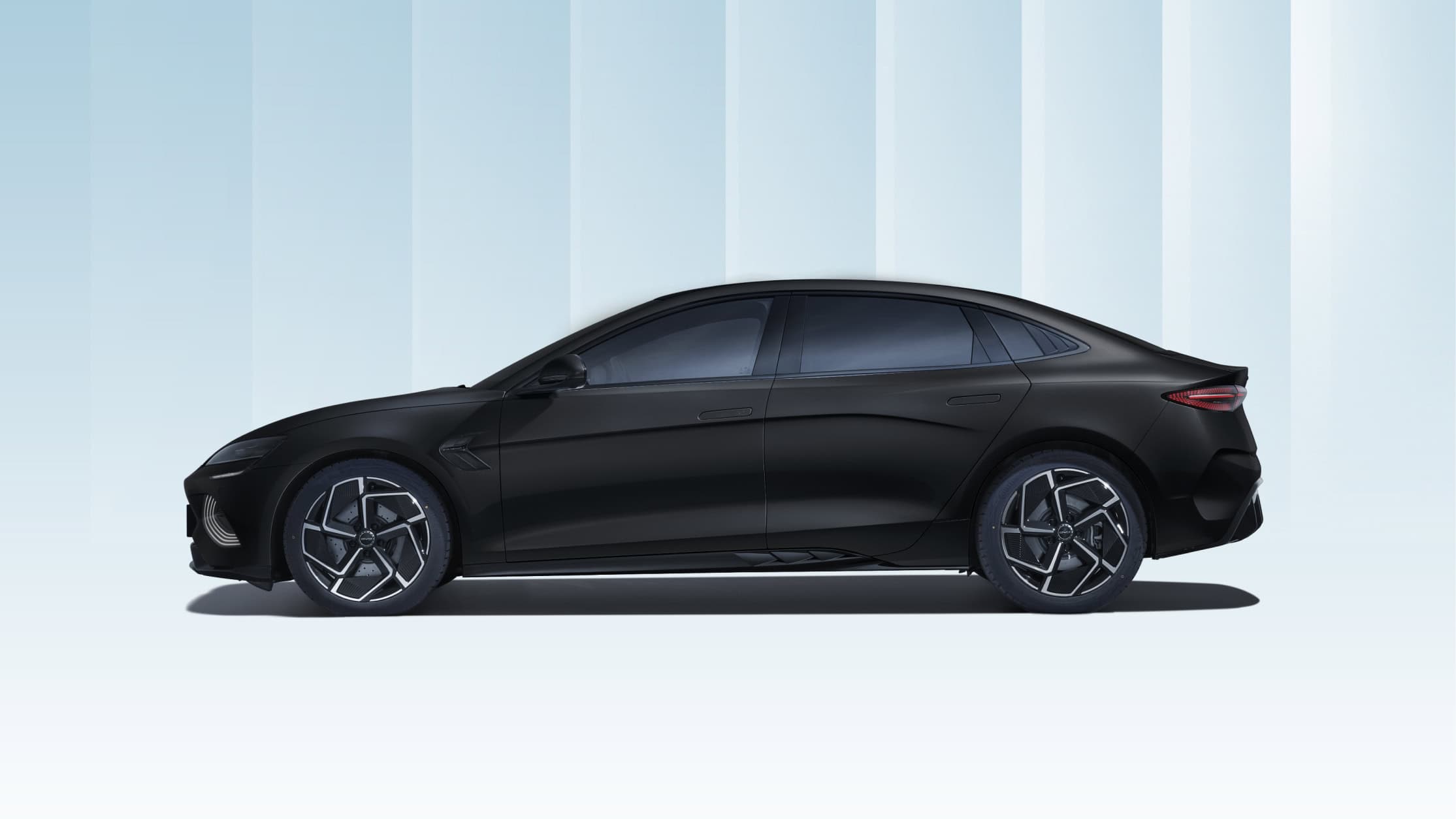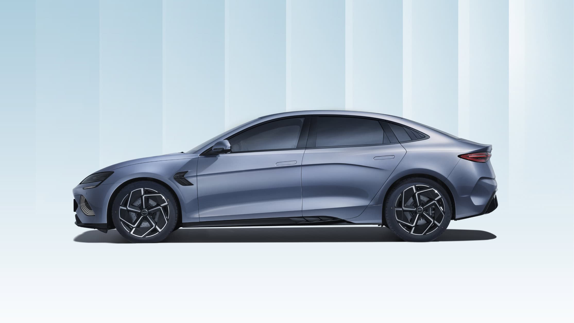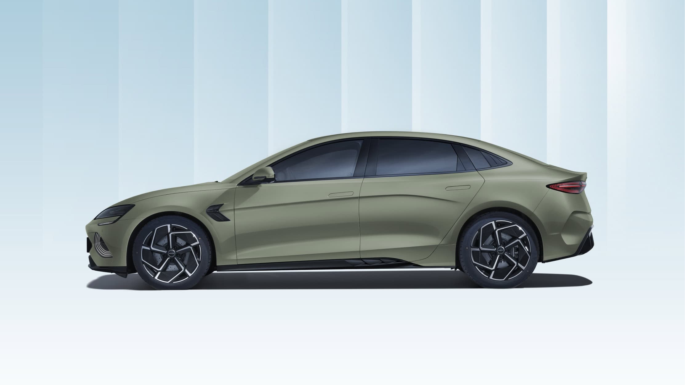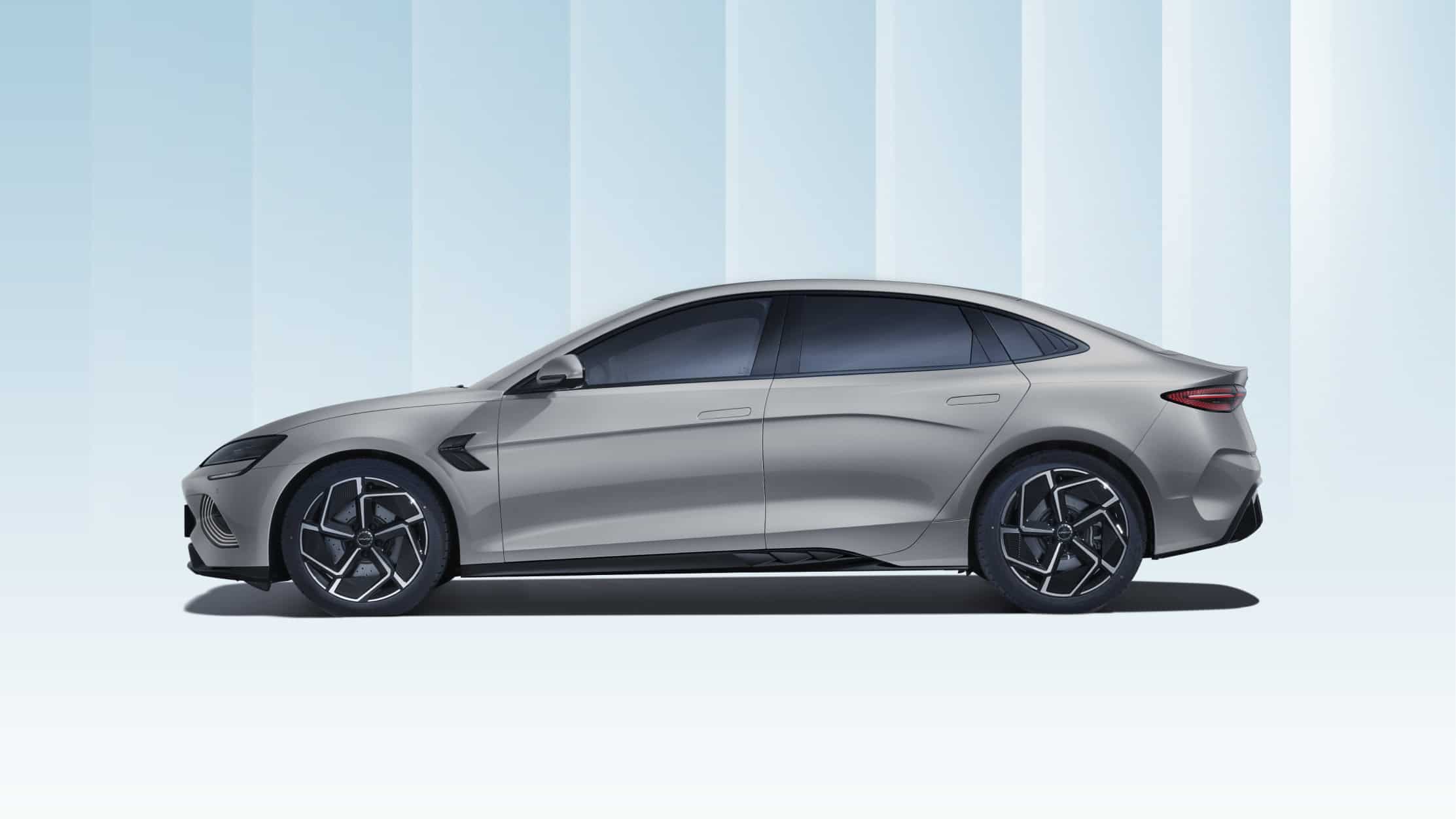 Thân xe BYD Seal mang phong cách coupe với các đường gân nổi chạy dọc thân xe, tạo cảm giác thanh thoát và uyển chuyển. Tay nắm cửa dạng thò/thụt được thiết kế ẩn vào thân xe, giúp giảm lực cản gió khi di chuyển ở tốc độ cao. Gương chiếu hậu tích hợp đèn xi-nhan cùng khả năng chỉnh/gập điện tiện lợi, góp phần tăng tính tiện nghi.